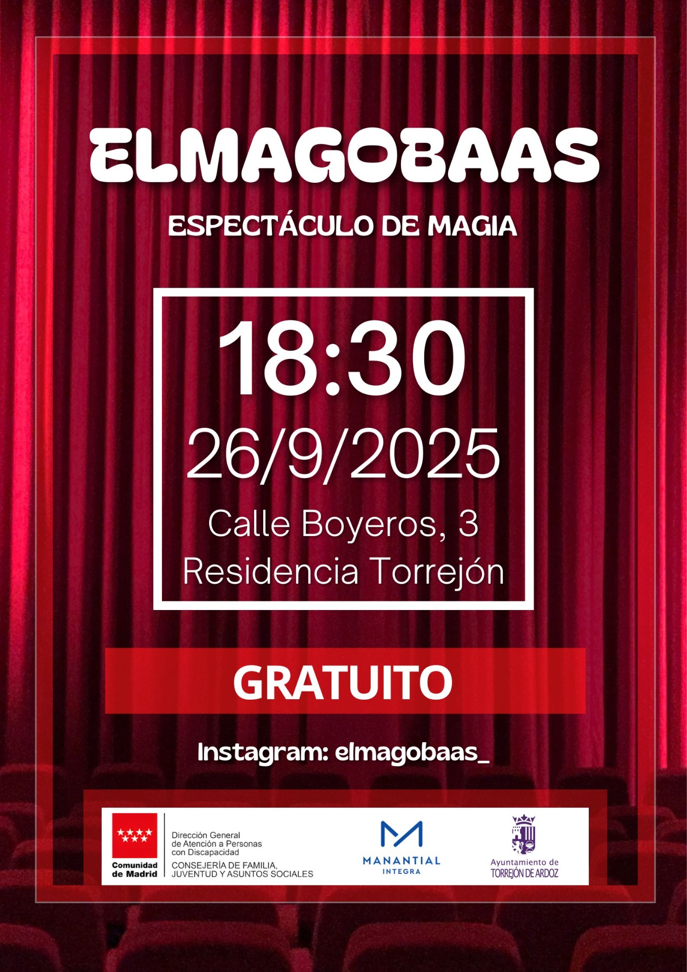 El próximo 26 de septiembre estaré en Torrejón con un show de magia único, abierto a todo el público y pensado para compartir una tarde inolvidable.